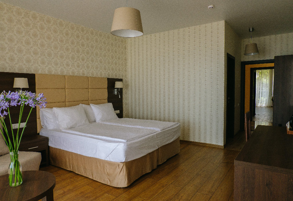 Площадь номера - 30 кв.м. 1 комната. 2 осн. места. вид на море или сад. В номере: телевизор; холодильник; балкон; кондиционер; душ; туалет; фен; 1-спальные/ 2-спальная кровать; чайник. 1 доп. место: